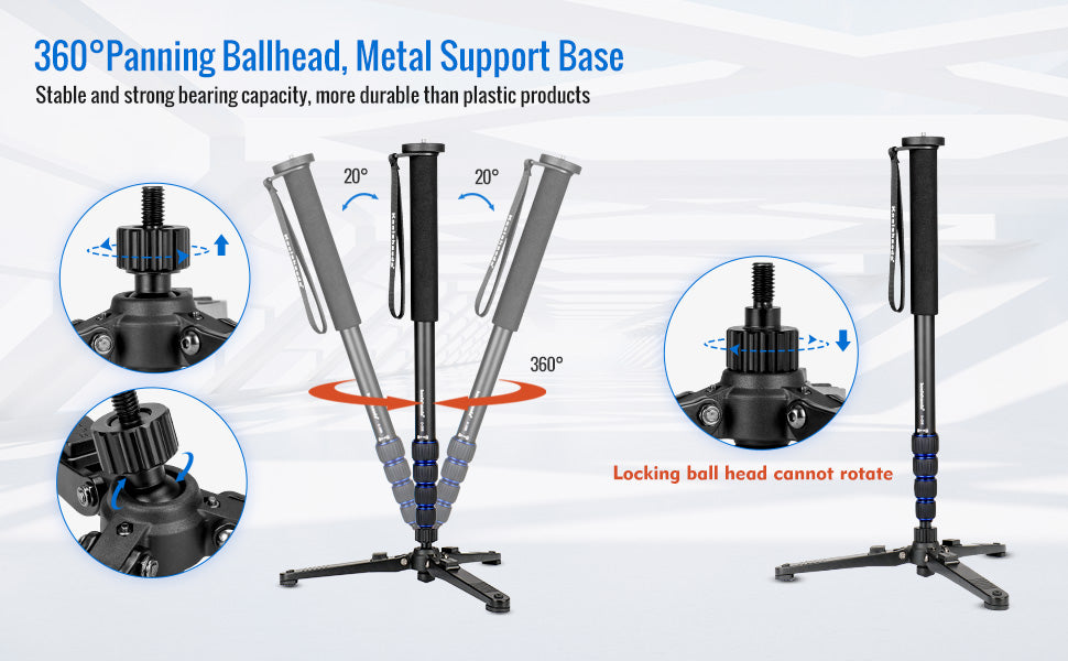 ★Tripod support base can help the monopod achieve 360 degree panoramic rotation and tilt of 20 degrees,Tripod support base with 3/8" screw can be used as a desktop mini tripod.