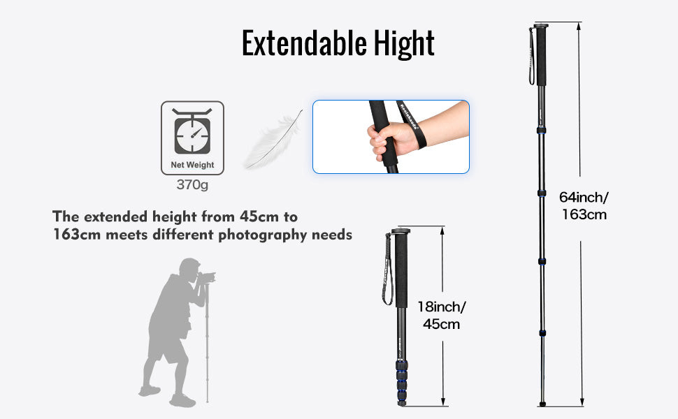 ★Monopod can be used to alpenstock . It is light and convenient, also give you other choice.