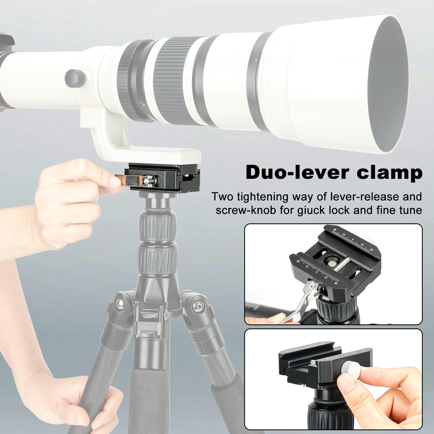 - Lever-Lock Release Design for Quick Adjustments: The lever-lock release mechanism ensures swift and secure locking of the quick release plate, The jaw width can be adjusted via the side screws to provide you with greater flexibility and convenience.