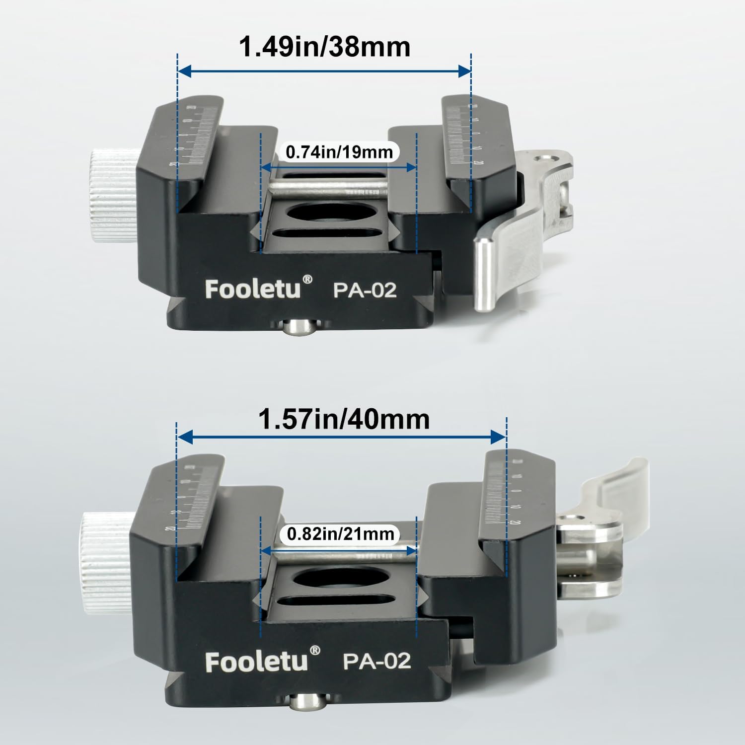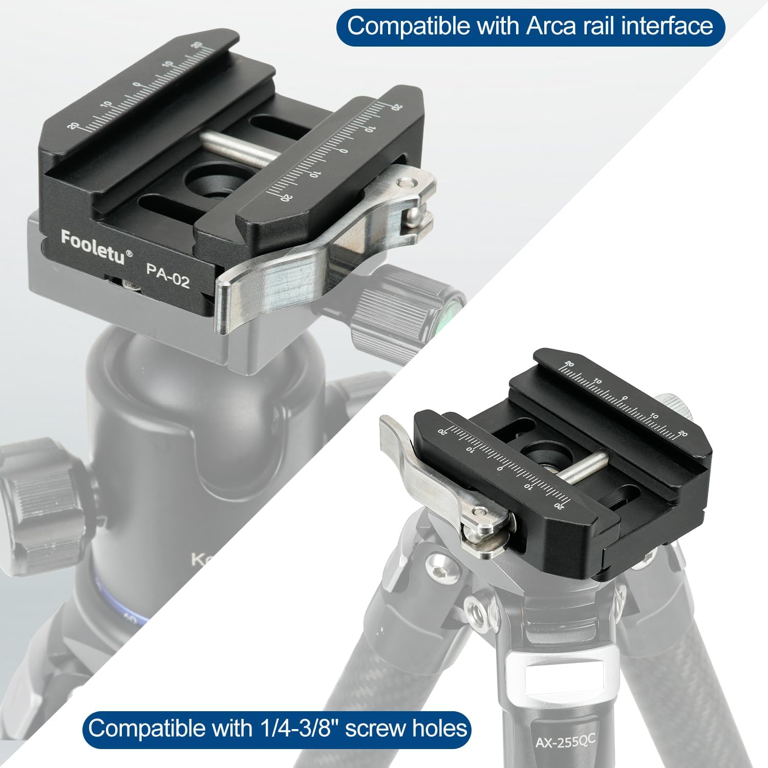- Fooletu PA-02 ARCA-Swiss Quick Release Clamps from solid blocks of aluminum, elaborately CNC machined with type-III hard-anodized finish ensures it’s resistant to abrasion and corrosion; for higher durability, screws and anti-slip lugs are stainless steel. It weighs only 5 ounces and is 2.36 inches long, making it small and convenient.