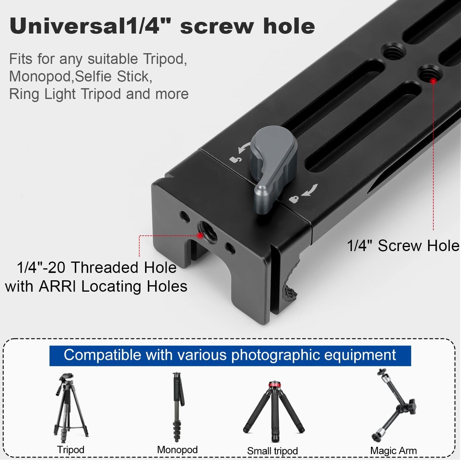 For Arca-Style Quick Release Plate, you can install it on the ball head of the tripod quickly. and there is also a universal 1/4'' screw mount, compatible with all tripods and sliders.