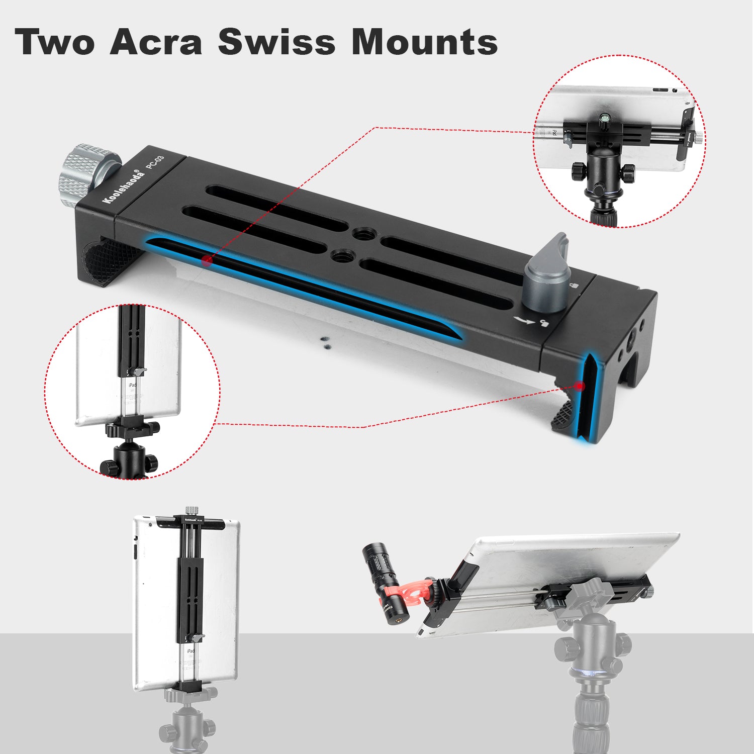 • 【Versatile Mounting Options】Equipped with ARCA-standard dovetails on the bottom and back, this clamp is fully compatible with ARCA-Swiss quick-release systems. It allows for rapid mounting on acra tripods or monopods; Features 1/4"-20 screw sockets on the bottom and back of the clamp, Easily attach your tablet or iPad to tripods, monopods, flexpods, or any standard 1/4" screw-compatible mount for seamless use in photography, videography, or everyday tasks.