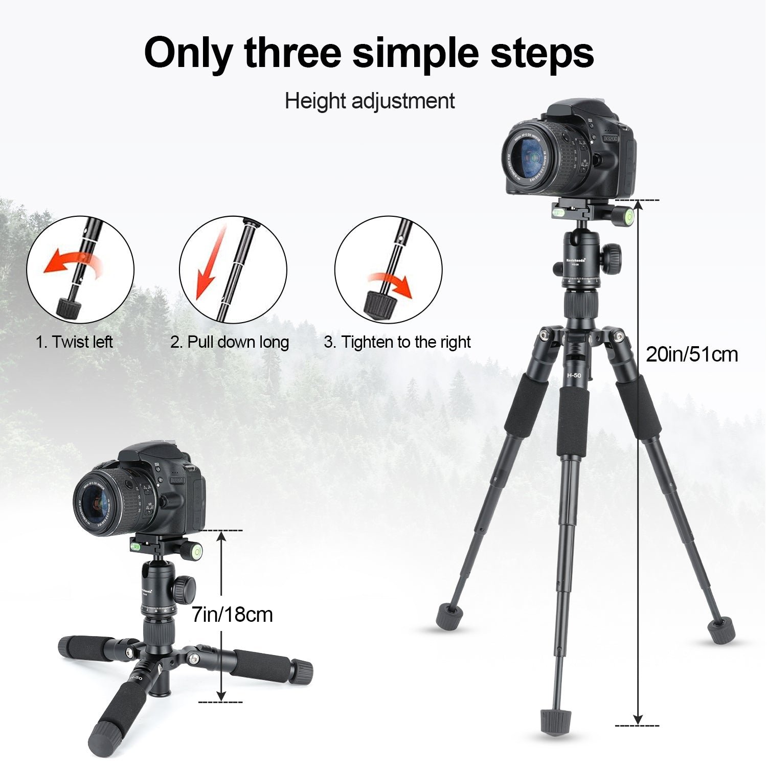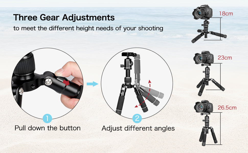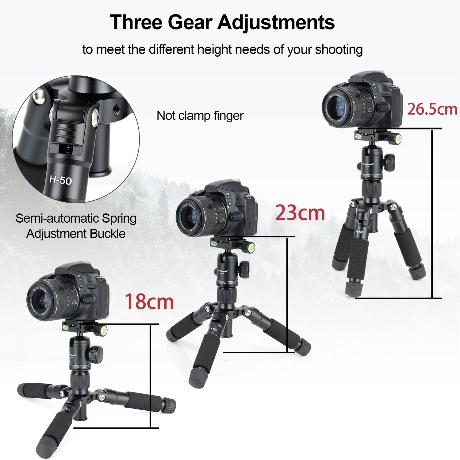 • :)Tripod mini height reaches 7inch/18cm, so it is the best choice for macro shooting with smaller size, lighter weight and closer distance It is also a solution for you to have ground level shooting.
