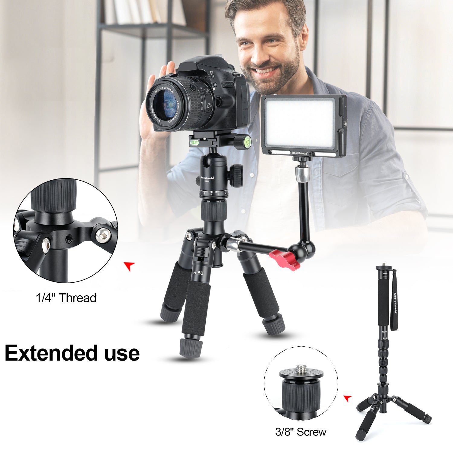 • :) Innovatively added a 1/4-inch screw external accessory hole beside the tripod platform,which can be easily matched with magic arm Expand various devices, such as mobile phones, LED video light, microphones and many other camera aids. Use equipment and accessories together.