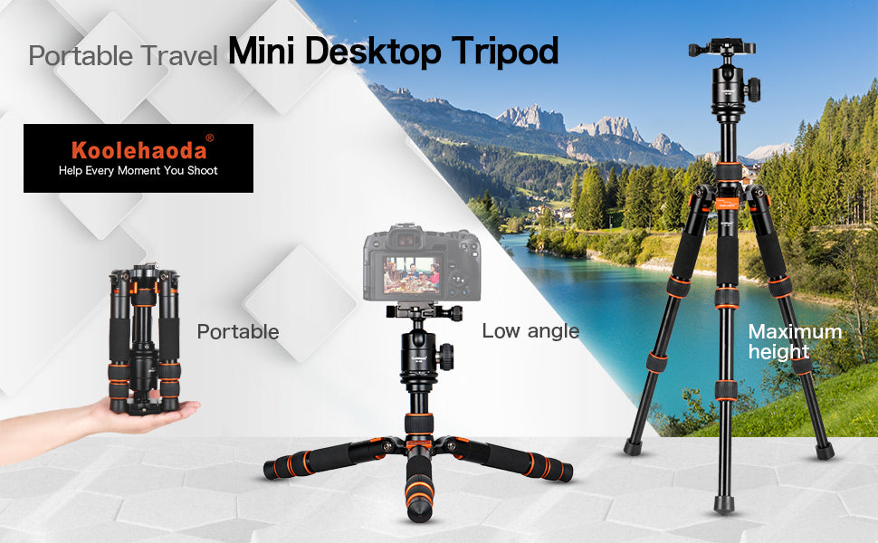 - ◆Solid Construction: The tripod is Made of Aluminum Alloy, durable and solid; Max load weight is 11lbs/ 5kg.You can use it on the table photography. It is also a solution for you to have ground shot.