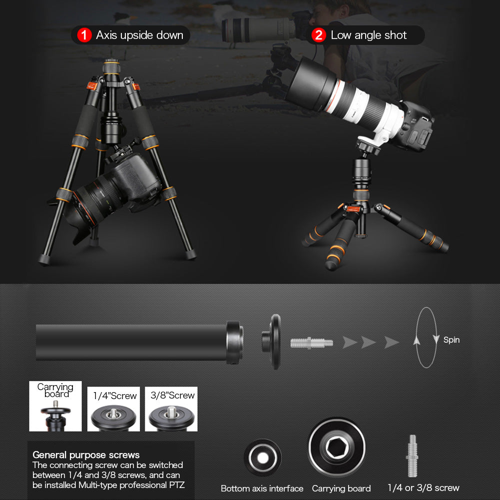 - ◆Compatibility: Compatible with many DSLR Camera Video Camcorder. Tripod with a reversible 1/4" - 3/8"screw, it can be connected with monopod or selfie stick for multi-purpose use.