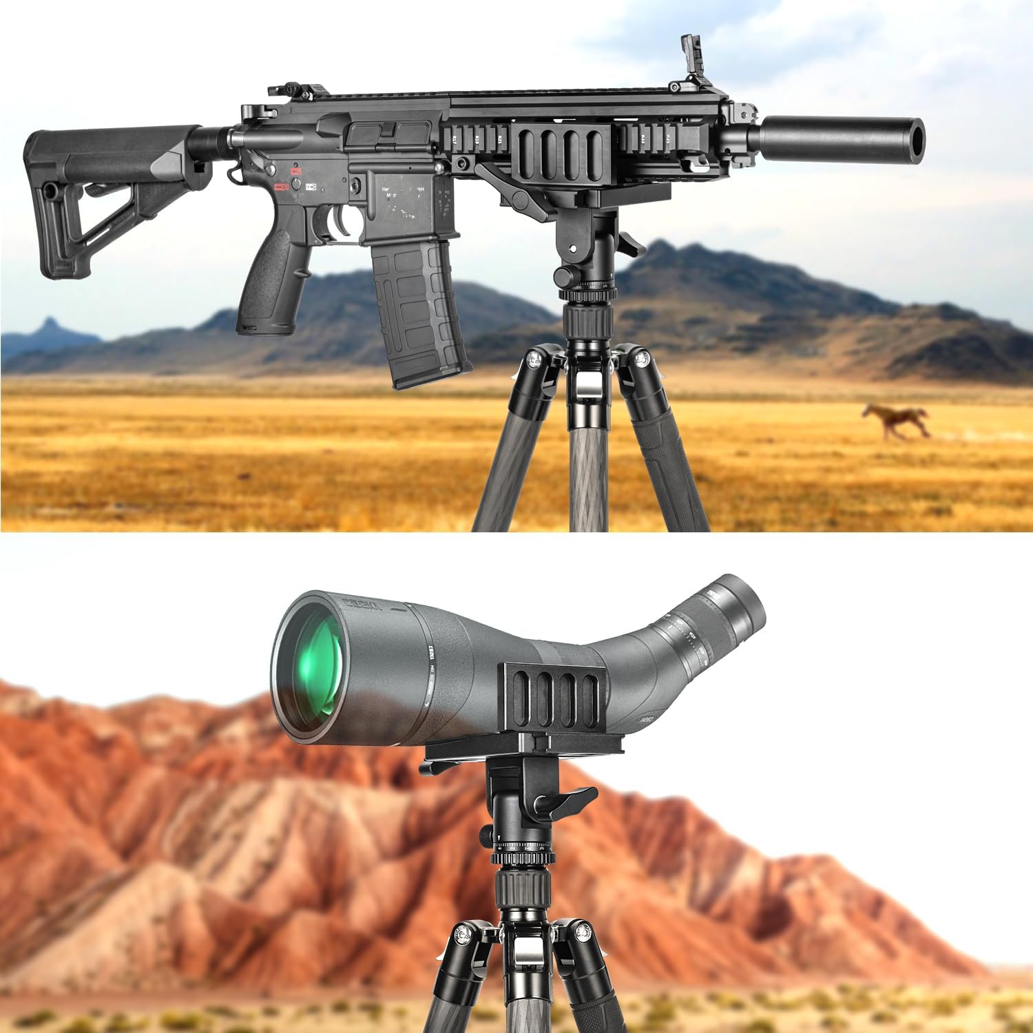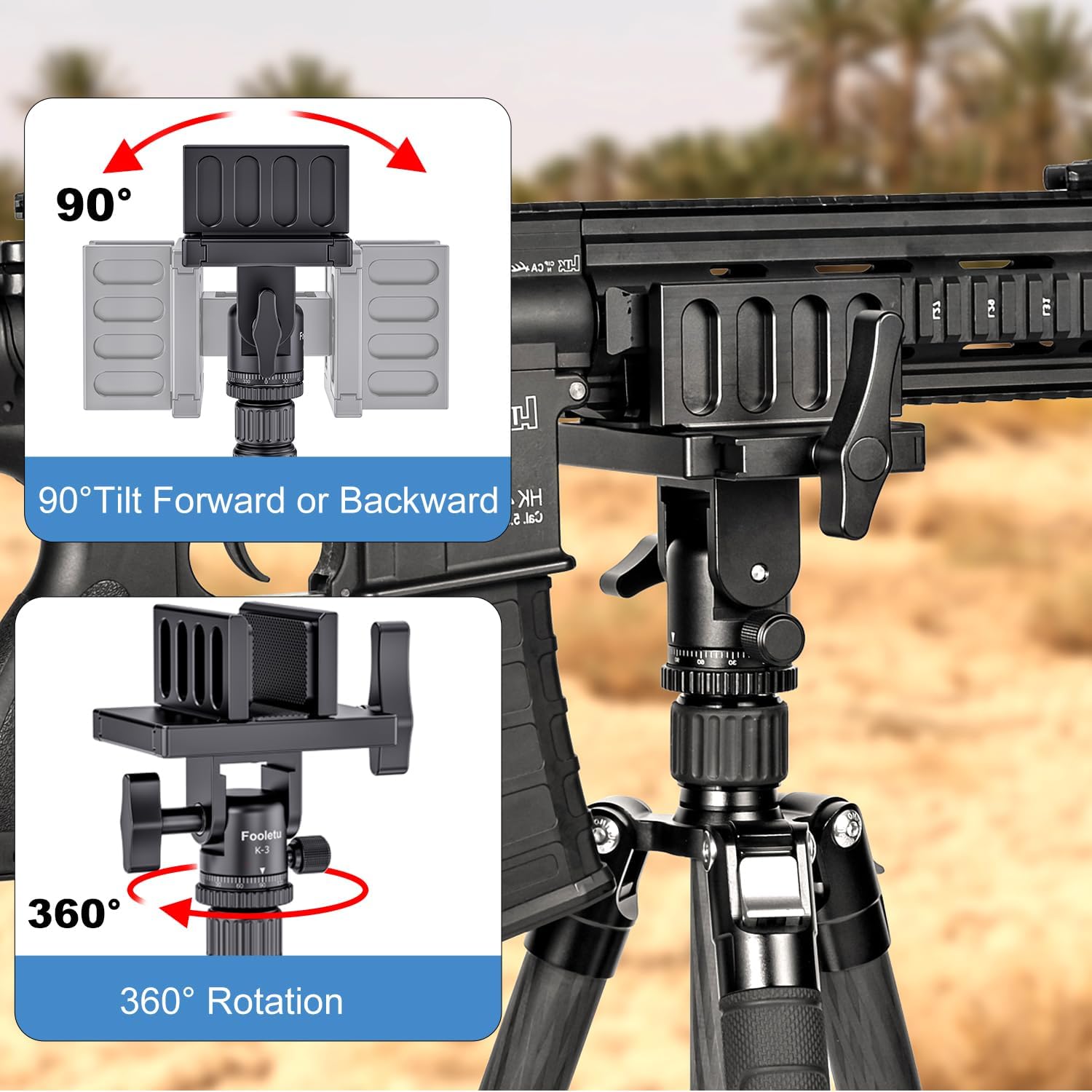 - The tripod head has an all-metal knob that is easy to adjust and won't be twisted out. Large locking knob reduces extra weight and ensures easy adjustment. whether you're hunting in the wilderness or practicing at the range, allows you to set up a stable shooting platform.