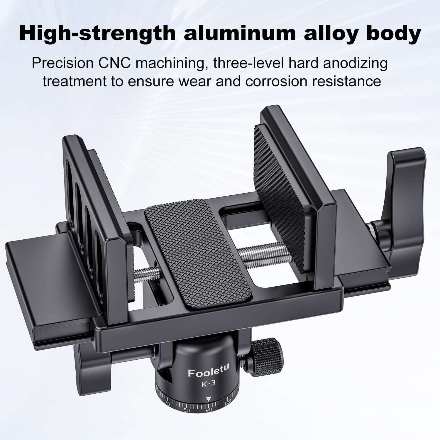 - CNC machined thick aluminum body, premium internal rubber pads, black oxide stainless steel bolt. Matte black anodized finish for superior corrosion resistance. this shooting Saddle head has been designed to allow both jaws to move, keeping the centre of the saddle over the tripod column for maximum stability.