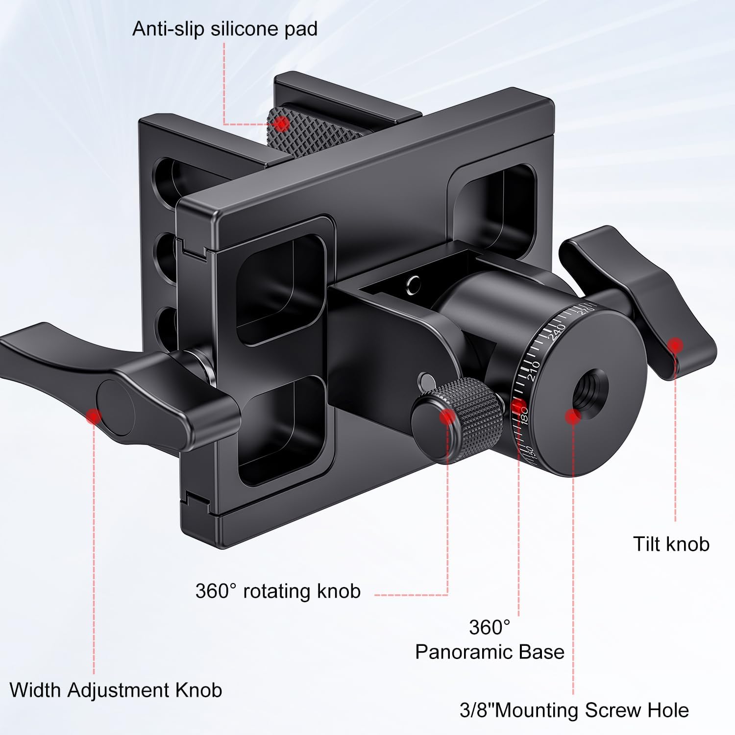 - Rest clamp adjustment range 1.02" to 3.03" (2.6cm~7.7cm). It is capable of holding a variety of equipment, Rubber pads on the inner side of the saddle increase friction with the loaded equipment and provide protection from scratches after powerful shock.