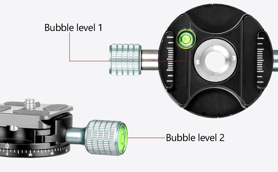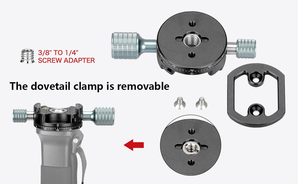 • :) Professional camera tripod Panoramic Head,Adopts a very high quality surface finishing and anodizing techniques, Solid and durable The scale for horizontal rotation has 0-360°. Fast loading base with antiskid lock function.