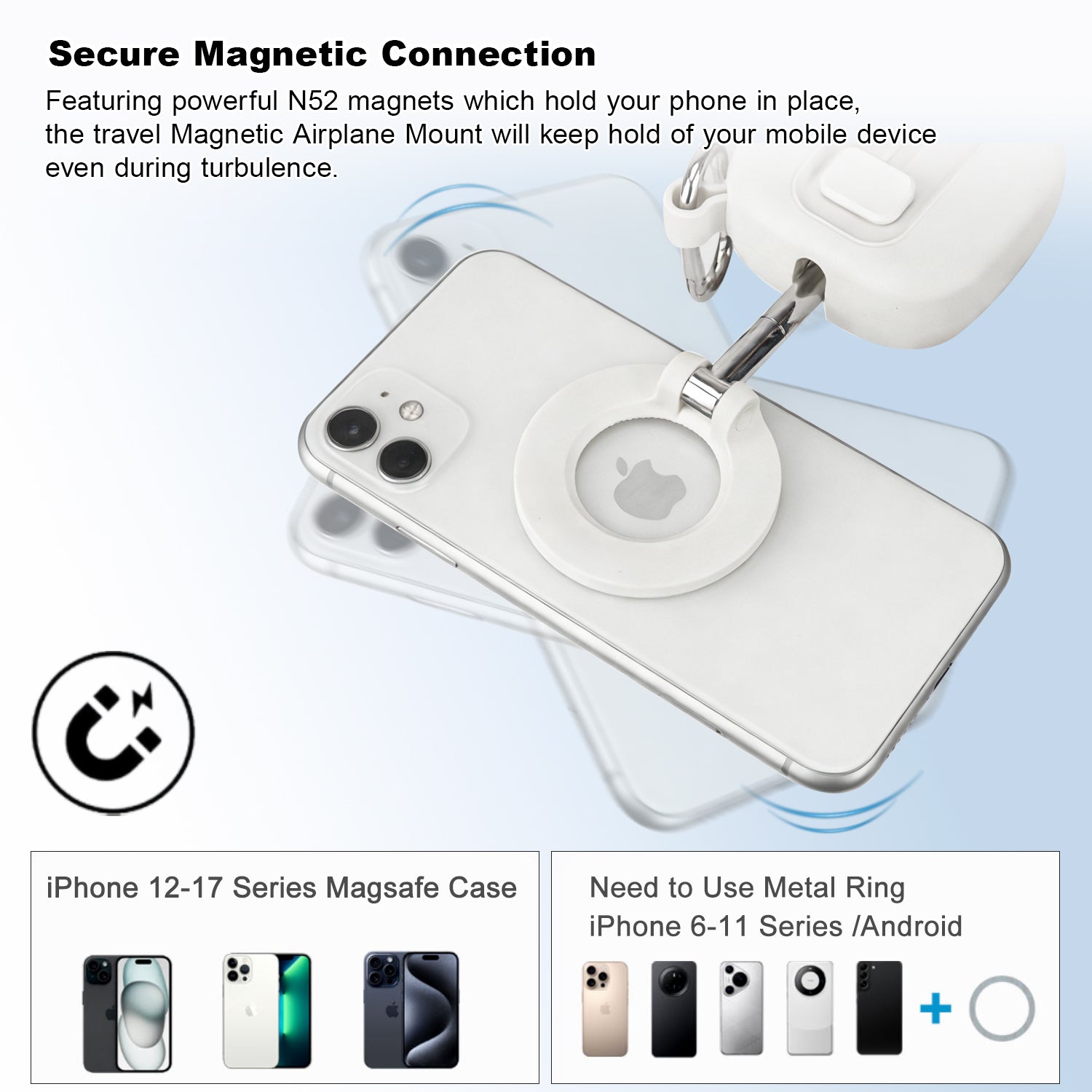 - Designed for MagSafe | Important Notes Before Use: Not compatible with car vents/dashboards to avoid damage to devices or vehicles. Compatible with iPhone 12-17 series and phones with MagSafe cases (Note: Android users must attach the included metal ring to a flat phone case back - not suitable for cases with bumps or textures). This airplane gadget is a practical addition to your travel essentials kit.