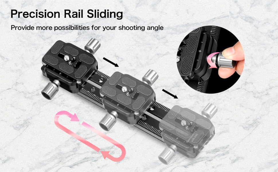 (1)double dovetail clamp plate(Upper and lower layer), can be The left Rotated 90° and The right Rotated 90°. Compatible with AS standard(2)With laser engraving precision scale,, Panorama shooting, you can accurately to the center of the lens as a node, The maximum degree of realization of the panoramic shooting seamless stitching.(3)At the same time, you can also macro large size before and after shooting adjustment, Reduce the frequency of adjusting the tripod, improve shooting efficiency